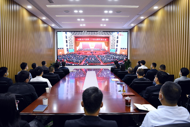 10月16日上午,城發(fā)公司黨支部組織全體員工收聽(tīng)觀(guān)看中國(guó)共產(chǎn)黨第二十次全國(guó)代表大會(huì)開(kāi)幕會(huì)。音樂(lè)響起,全體起立,大家齊唱國(guó)歌,現(xiàn)場(chǎng)熱血沸騰。大家聚精會(huì)神,全程認(rèn)真聆聽(tīng)了習(xí)近平總書(shū)記在中國(guó)共產(chǎn)黨第二十次全體大會(huì)上的報(bào)告。