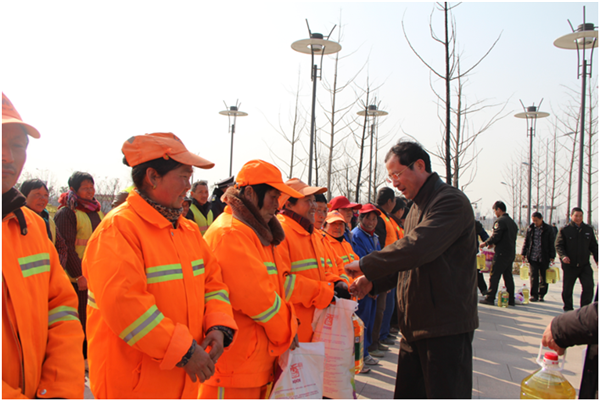 2月10日下午,園區(qū)黨工委委員、規(guī)劃建設(shè)局局長周原帶隊(duì)慰問了奮戰(zhàn)在一線的城市維護(hù)人員及部分困難環(huán)衛(wèi)工人,向他們送上了春節(jié)的問候。園區(qū)城管局有關(guān)負(fù)責(zé)人陪同慰問。